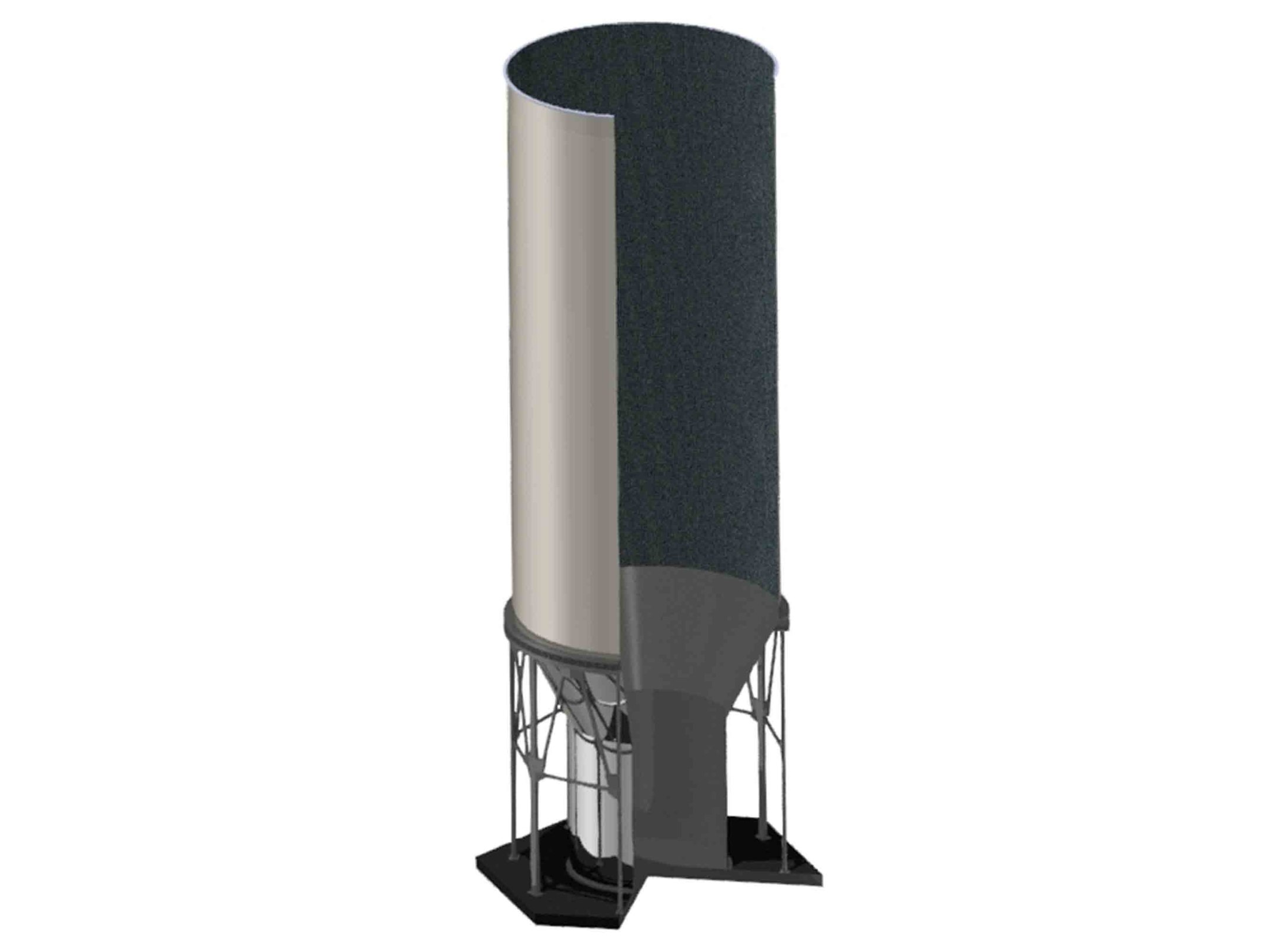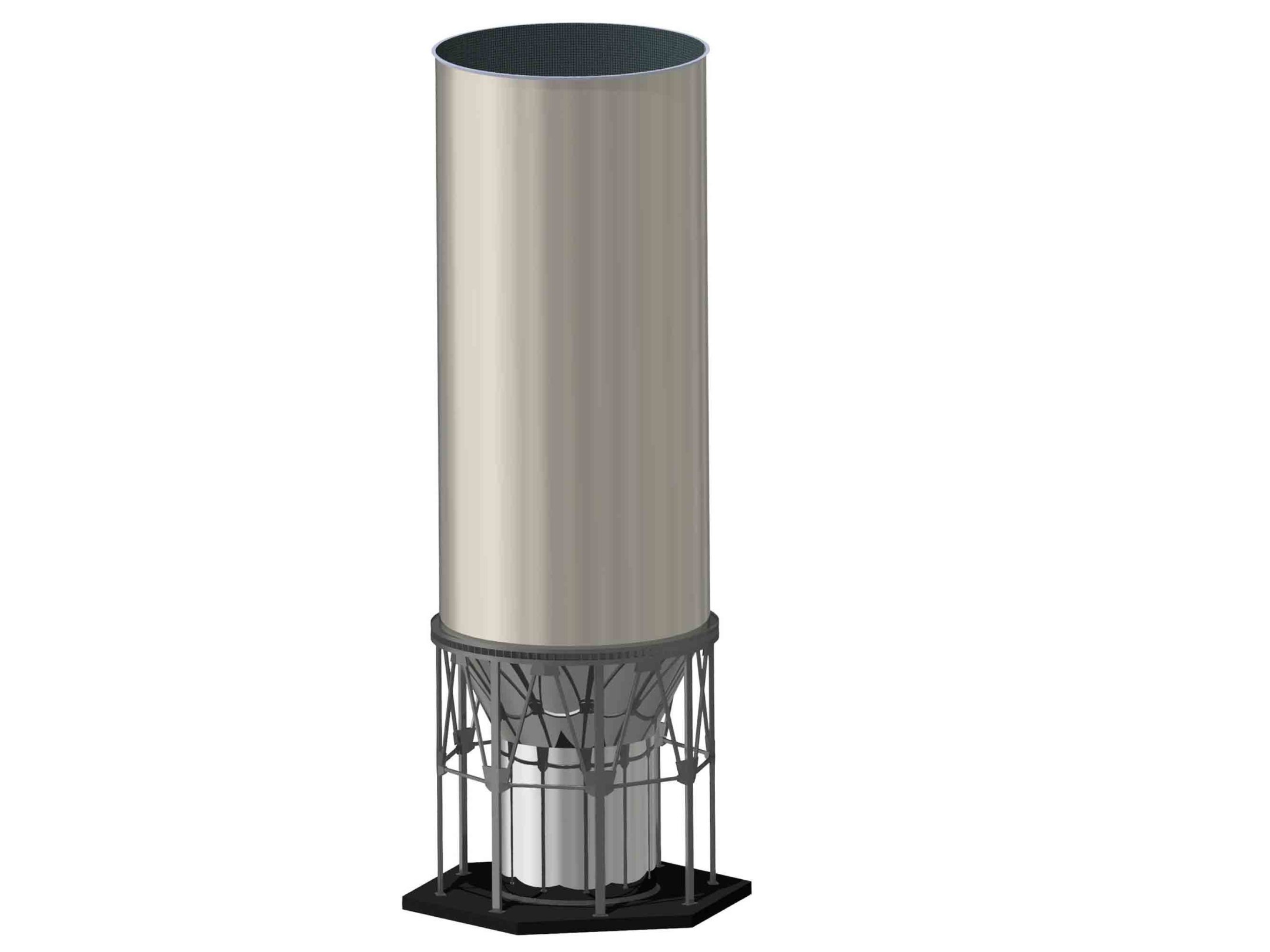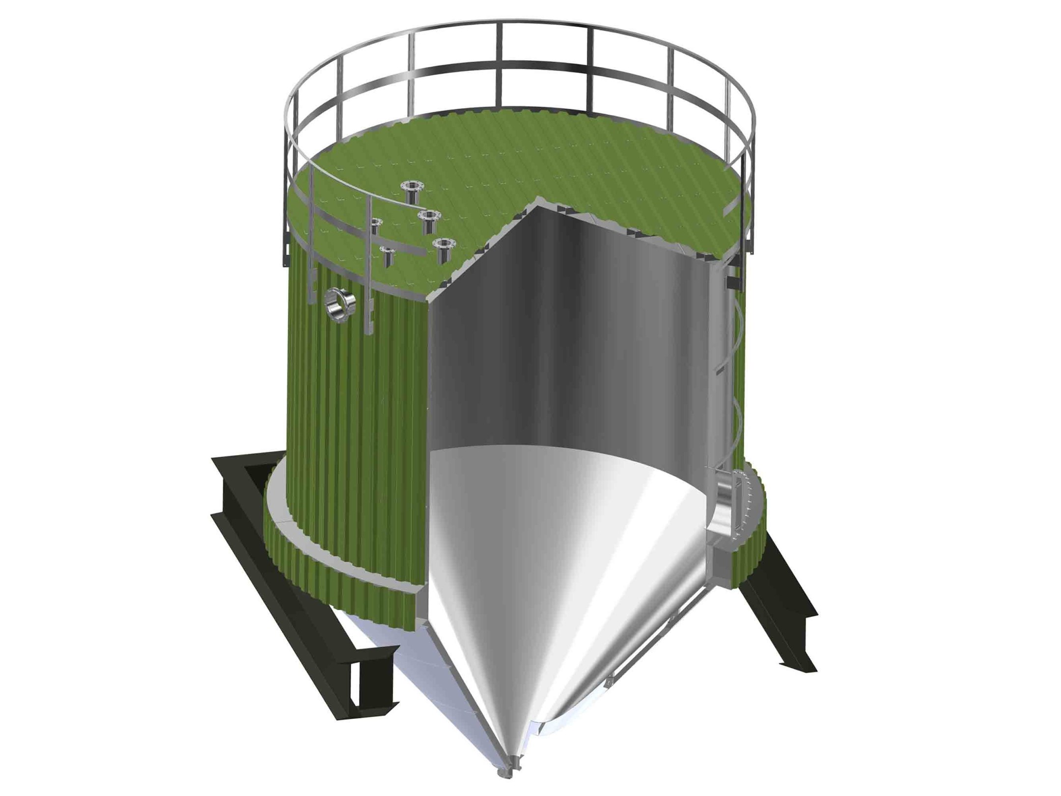 В проект включены наклонное сболченное дно, коническая каркасная кровля с теплоизоляцией.
