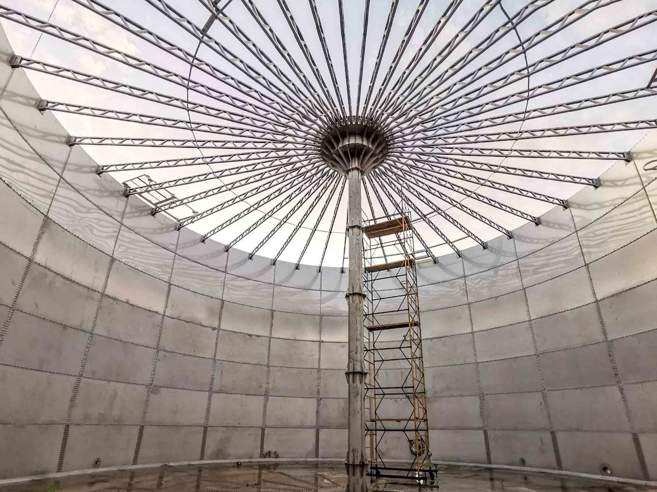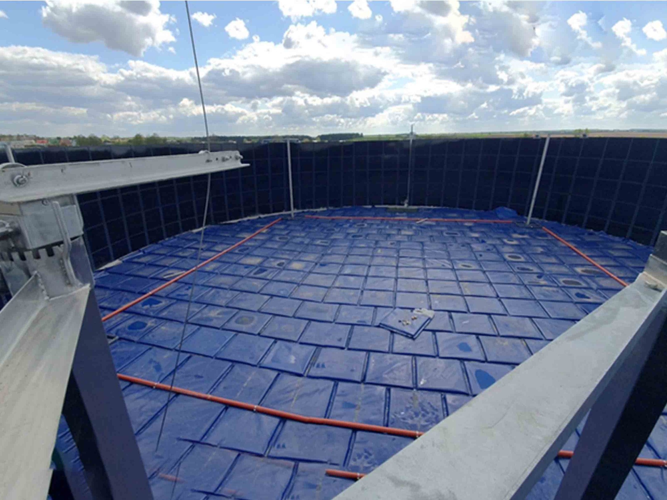 НИОКР стальной сболченный резервуар с плавающей нежесткой кровлей. Объем резервуара 4600м3, Высота 6м