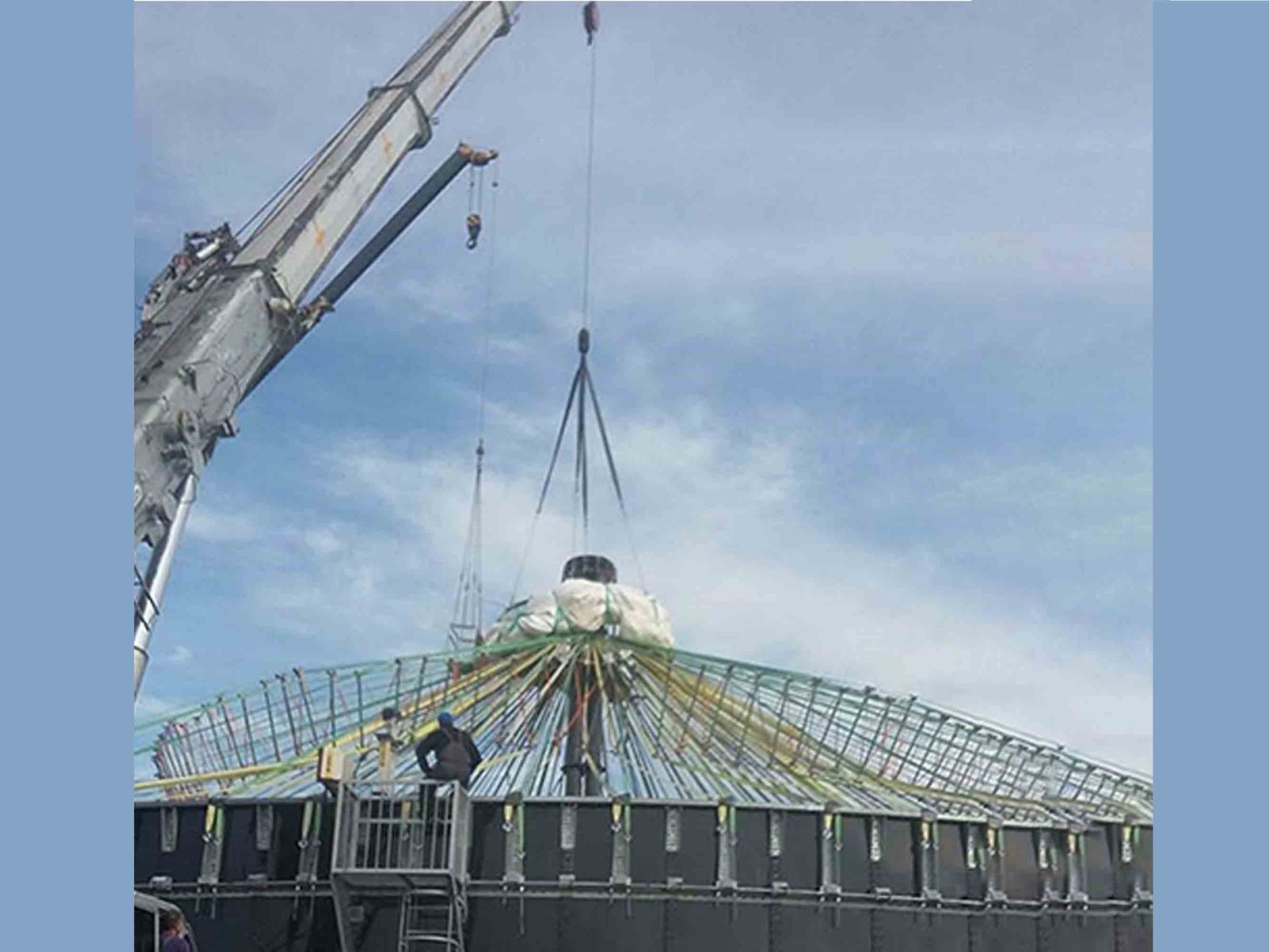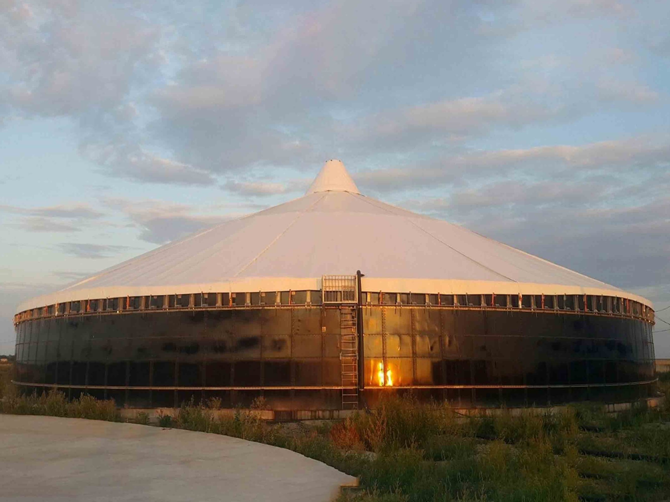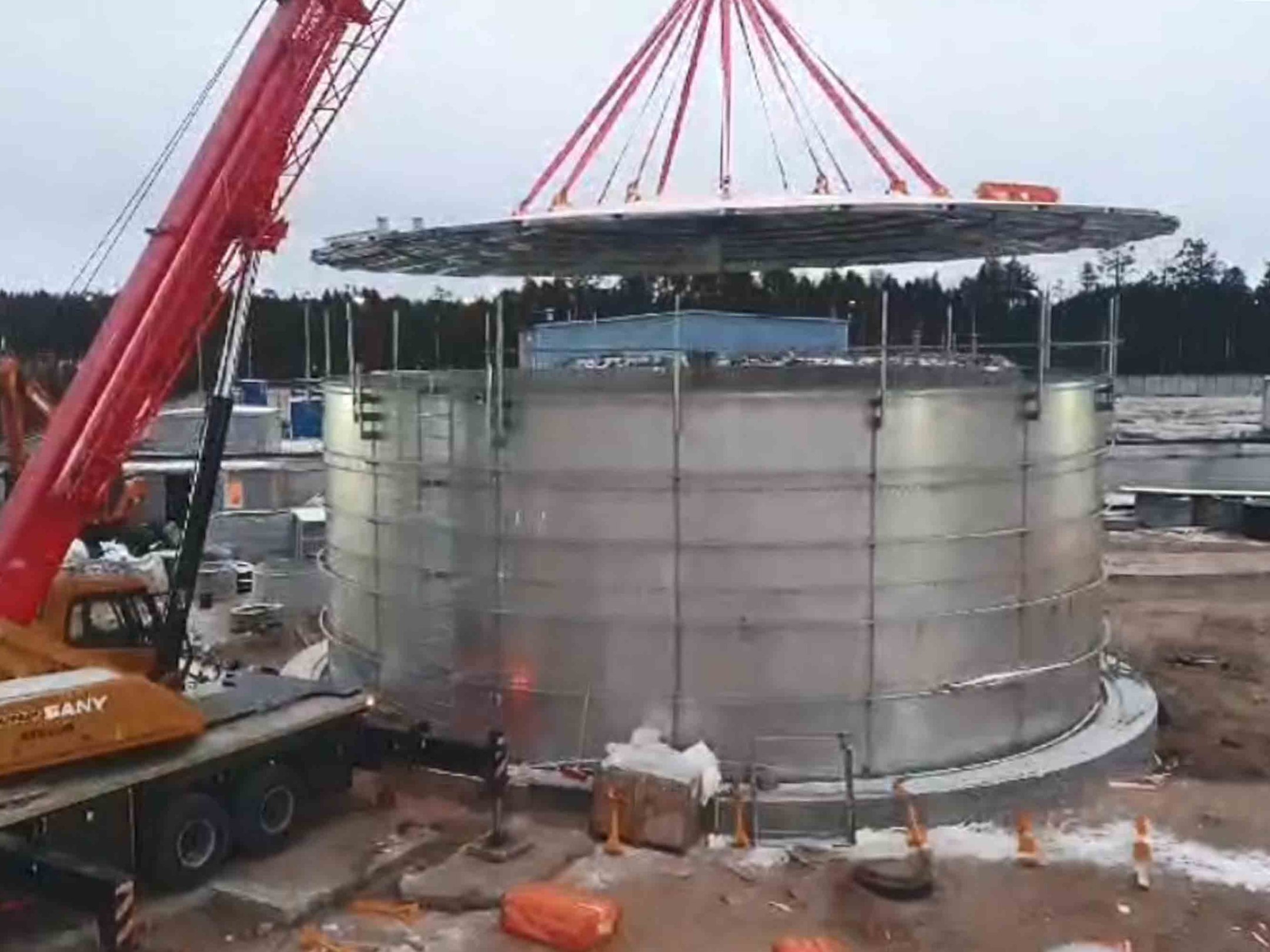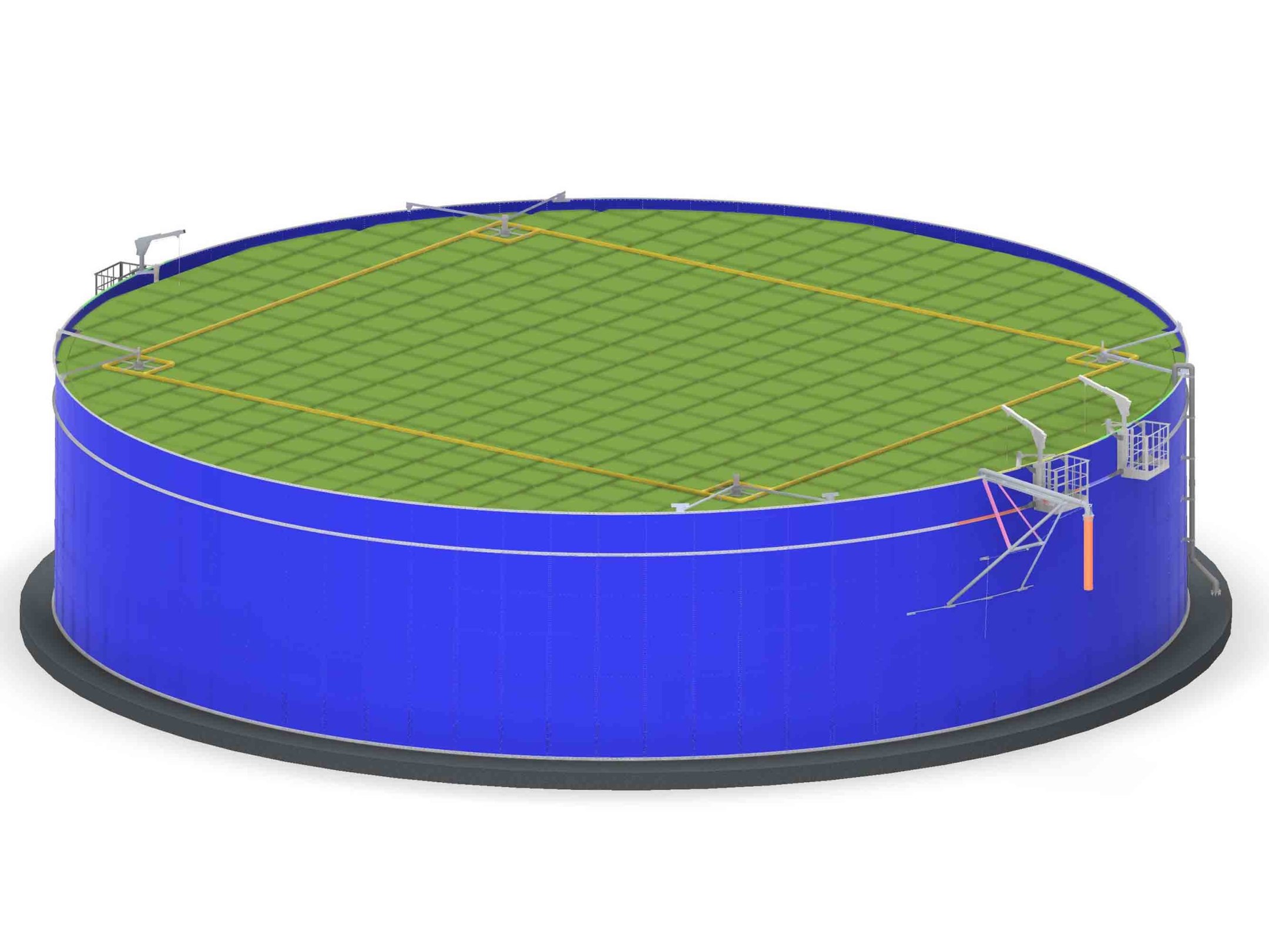 НИОКР стальной сболченный резервуар с плавающей нежесткой кровлей. Объем резервуара 4600м3, Высота 6м